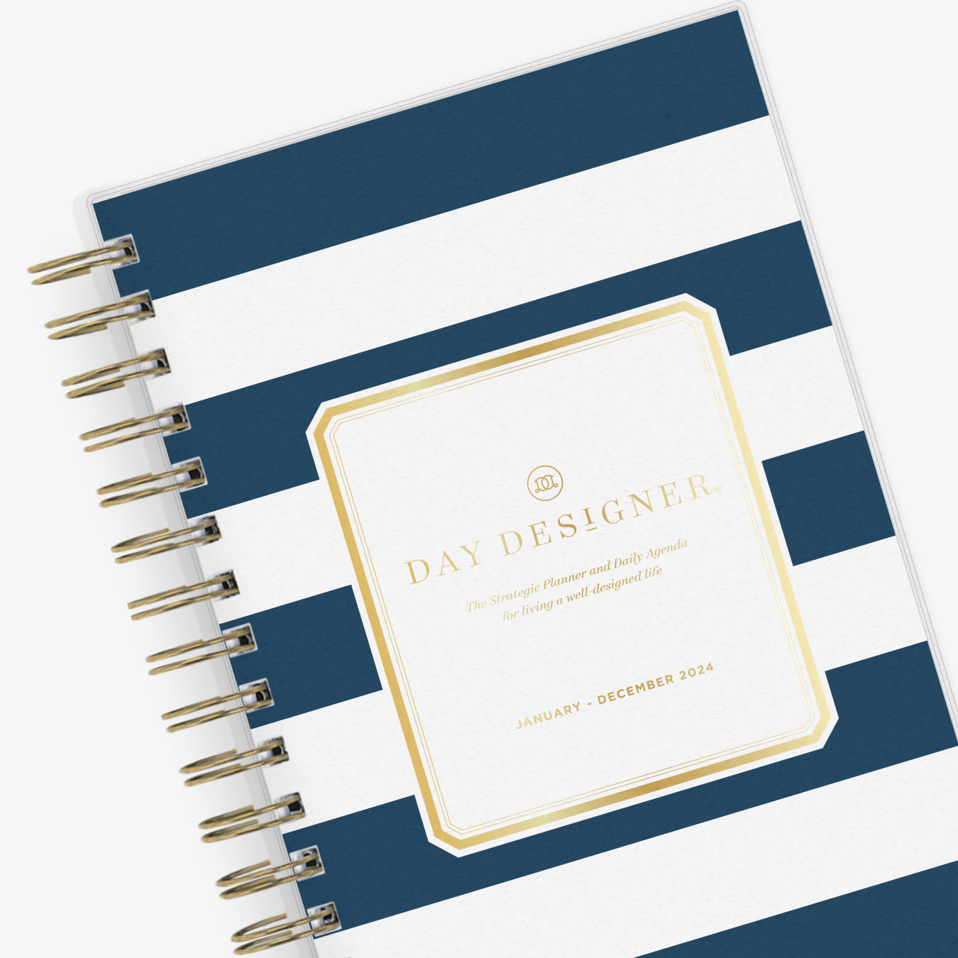 Rugby Stripe Navy 2025 Daily Monthly 5×8 Day Designer for Blue Sky